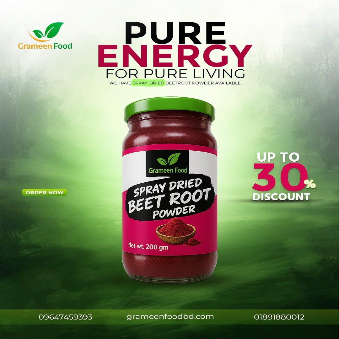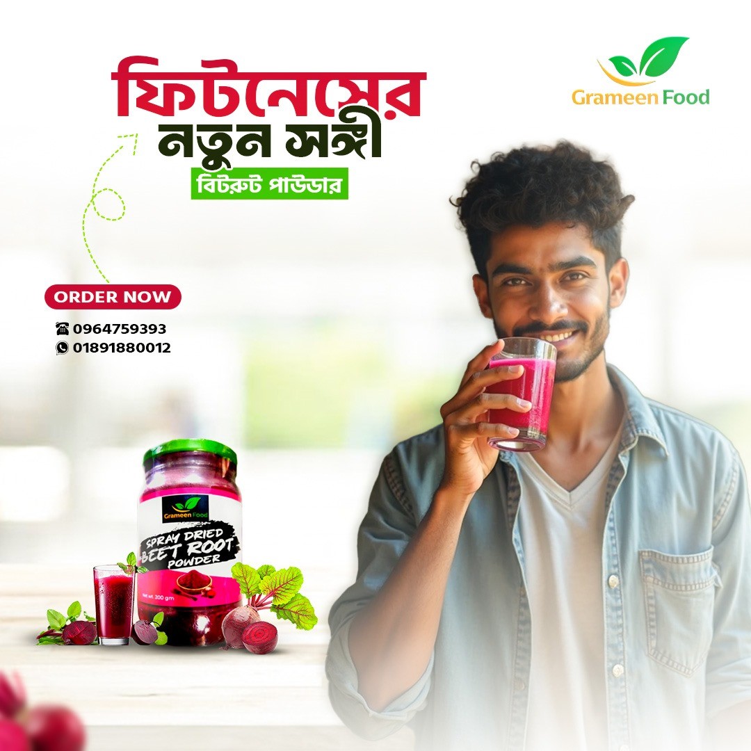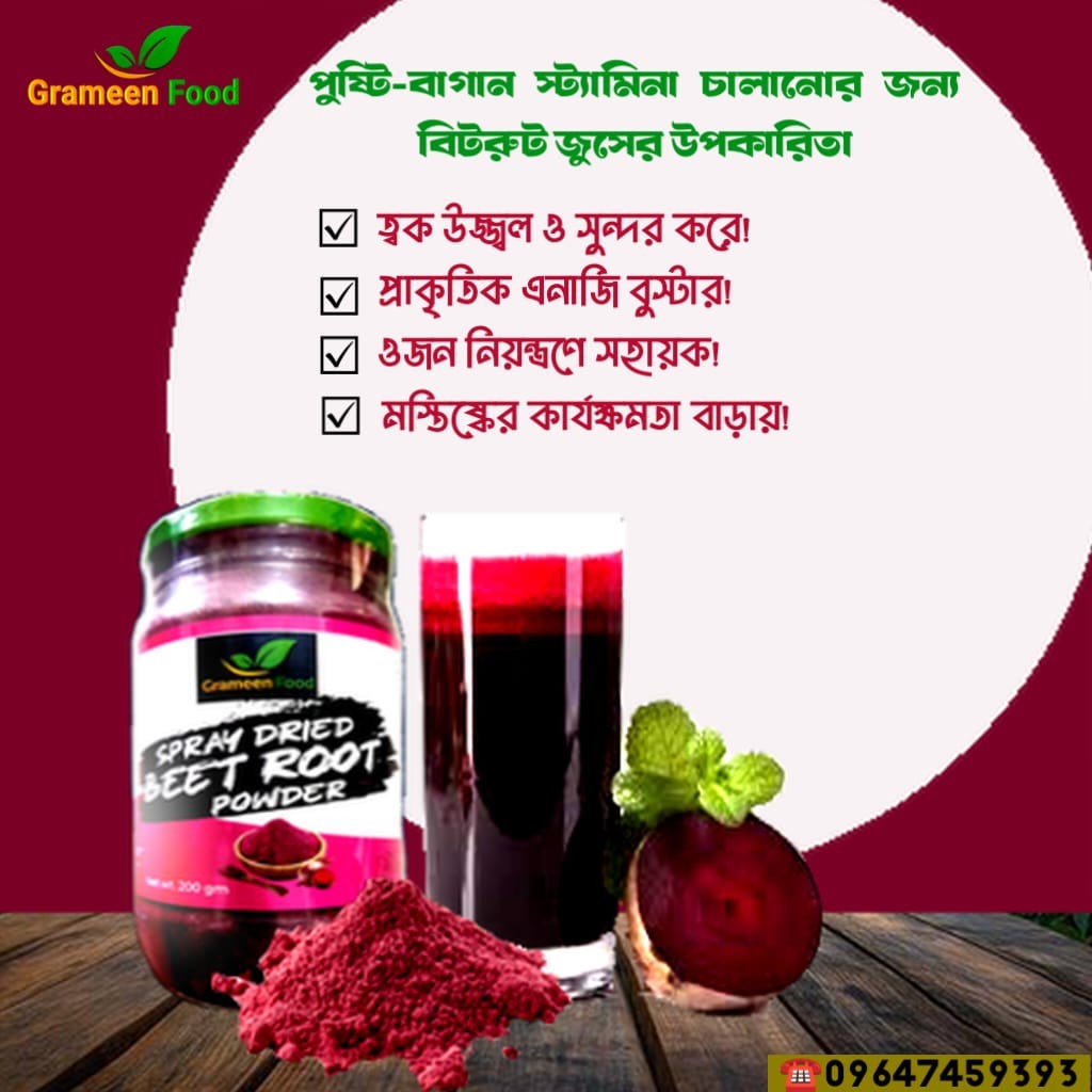 বিটরুট পাউডার Beetroot Powder আজকাল স্বাস্থ্য সচেতন ব্যক্তিদের মধ্যে বেশ জনপ্রিয় হয়ে উঠেছে। বিটরুট পাউডার হল বিটের শুকনো এবং গুঁড়া করা রূপ, যা শরীরের জন্য উপকারী বিভিন্ন পুষ্টিগুণে সমৃদ্ধ। এতে রয়েছে ভিটামিন সি, আয়রন, ক্যালসিয়াম, অ্যান্টিঅক্সিডেন্ট এবং প্রাকৃতিক নাইট্রেট যা আমাদের শারীরিক স্বাস্থ্য রক্ষায় সহায়ক। এই প্রাকৃতিক উপাদানগুলো রক্ত পরিশুদ্ধকরণ থেকে শুরু করে শক্তি বৃদ্ধিতে গুরুত্বপূর্ণ ভূমিকা পালন করে। সুস্বাদু এবং স্বাস্থ্যকর হওয়ায়, বিটরুট পাউডার খাবারে যোগ করার মাধ্যমে শরীরের জন্য নানা রকম উপকার পাওয় সাধন করে।