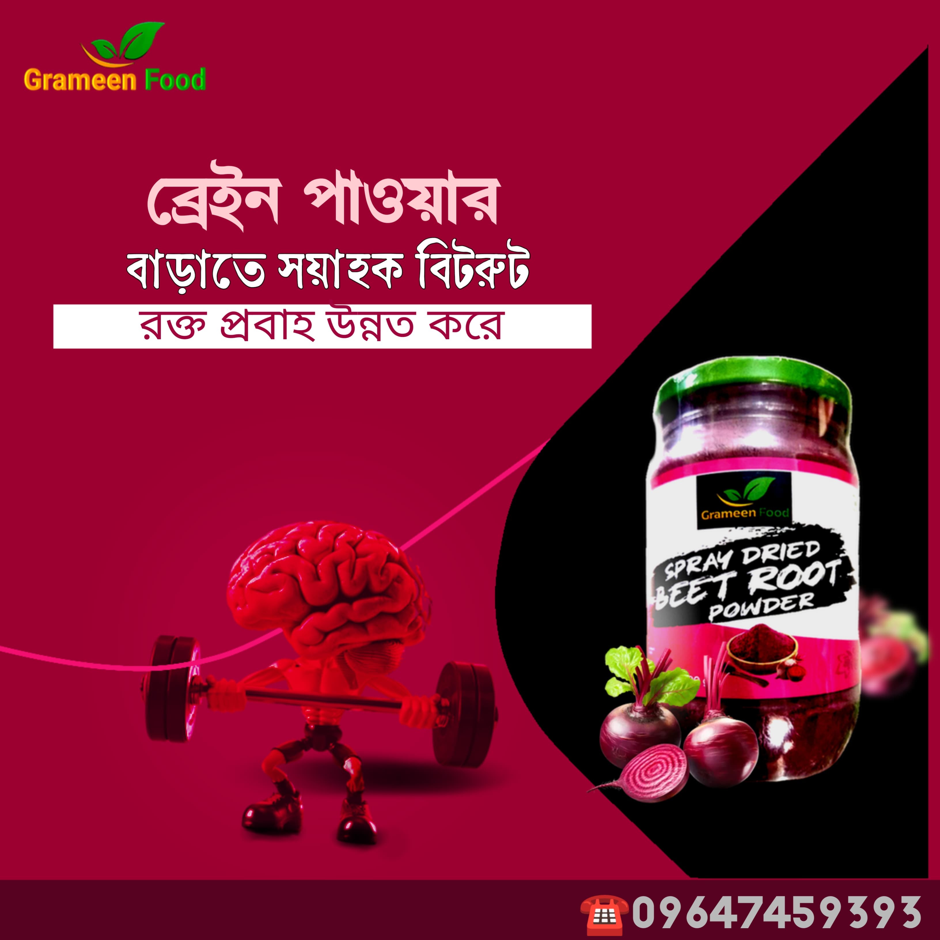 নাইট্রেট সমৃদ্ধ বিটরুট পাউডার মস্তিষ্কের রক্তপ্রবাহ উন্নত করে এবং স্মৃতিশক্তি ও মানসিক ক্ষমতা উন্নত করতে সহায়ক। এটি বার্ধক্যজনিত মানসিক দুর্বলতা প্রতিরোধে কার্যকর।